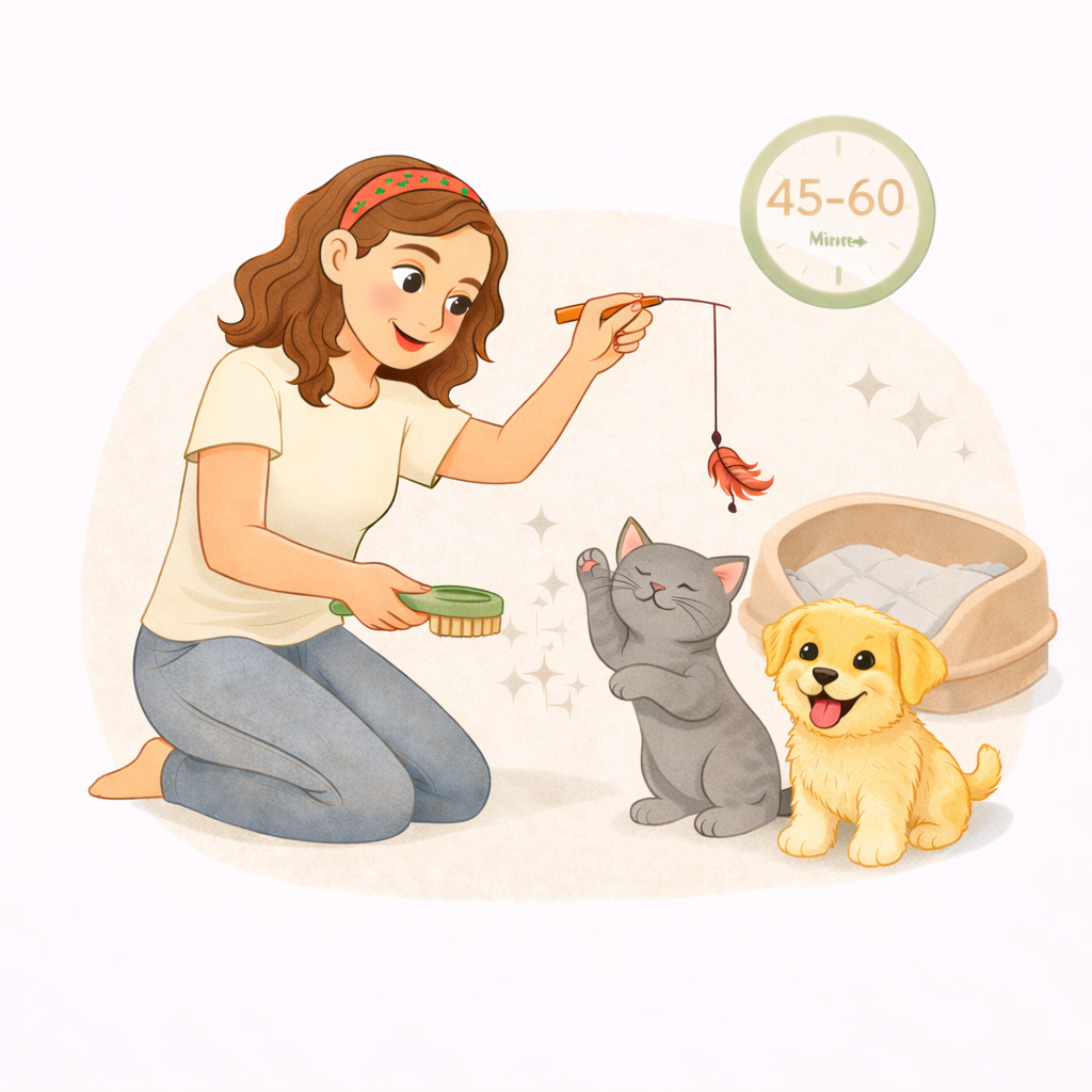 Plus de temps pour le jeu, l'interaction, le brossage, les promenades (chiens), et un suivi plus complet.