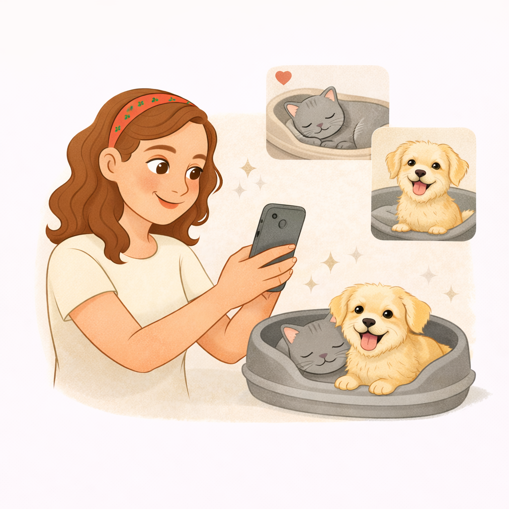 Visites quotidiennes ou home sitting : des solutions pensées pour le bien-être de votre animal, avec des nouvelles claires à chaque passage.